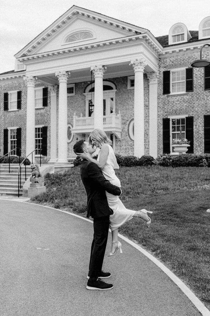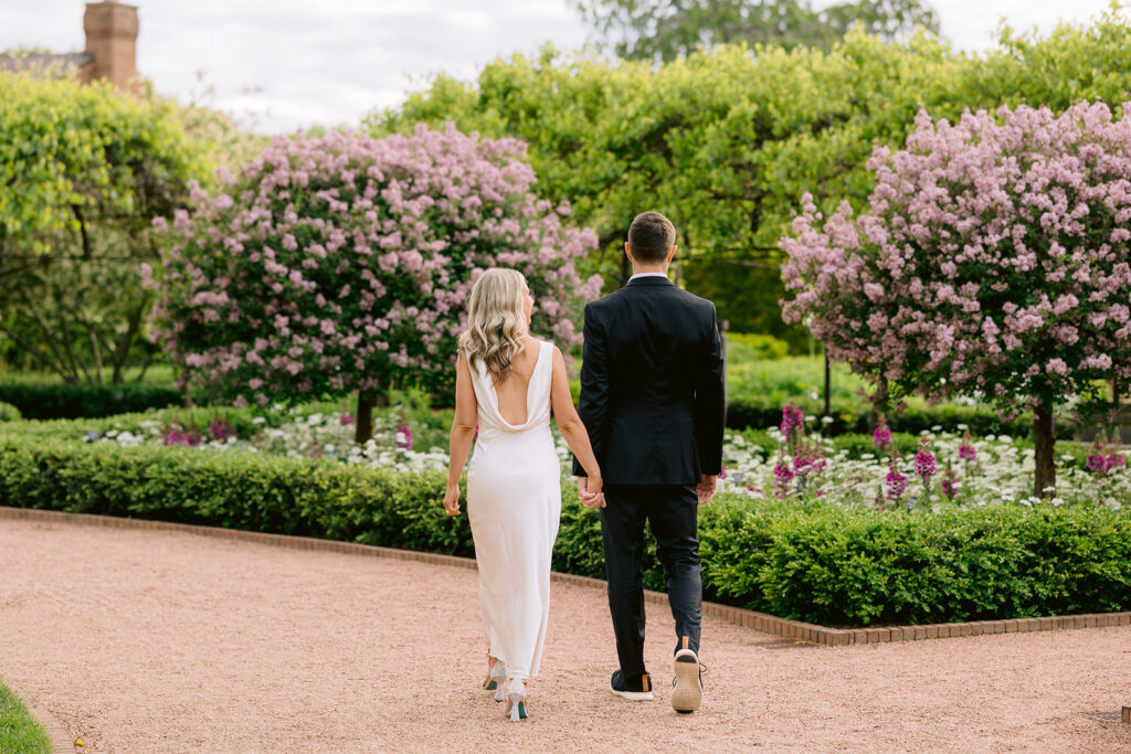 Dayna and Brian chose this stunning location for their session, and it couldn’t have been more perfect. They dressed in a formal suit and dress for a classy and elevated first look. Dayna’s flowy, champagne dress complemented the soft spring palette beautifully. Against the blooming gardens, their outfits felt timeless and refined, creating images that look straight out of a magazine.